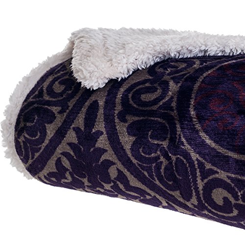 Bedford Home Printed Coral Soft Fleece Sherpa Throw Blanket, Purple