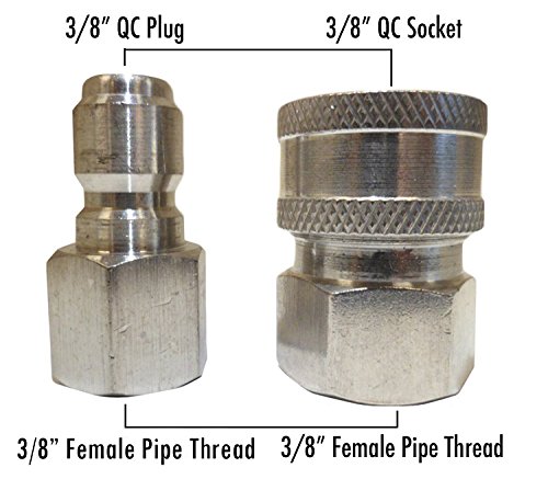 Ultimate Washer 18709 3/8-Inch Stainless Steel Quick Connect Pressure Washer Adapter Set, Max Pressure 5000 PSI Rating