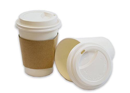 - (25) Premium 12 Oz White Disposable Paper Coffee Cups, (25) Matching Premium lids and (25) Brown Coffee Sleeves