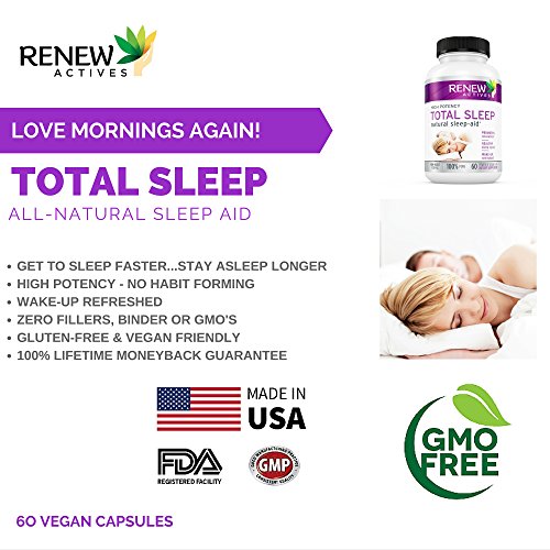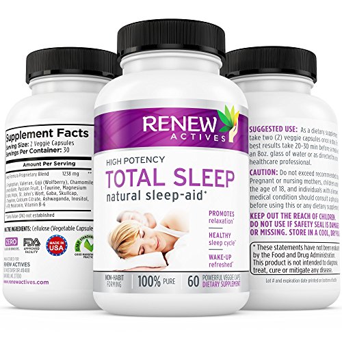 -. Feature : SLEEP AID FOR A LONGER & DEEPER SLEEP - Help calm anxiety for a enjoy a deep restful! / NATURAL SLEEP AID - Renew Actives Total Sleep is made with natural, non-habit forming ingredients! / GET THE SLEEP YOU DESERVE - Feel energized each morning after a great deep sleep! / DOCTOR-FORMULATED - Each Natural ingredient is formulated to provide sleep without a groggy hangover! / SUPPLEMENTS GUARANTEE - Experience the most satisfying sleep of your life or we'll refund you in full.
