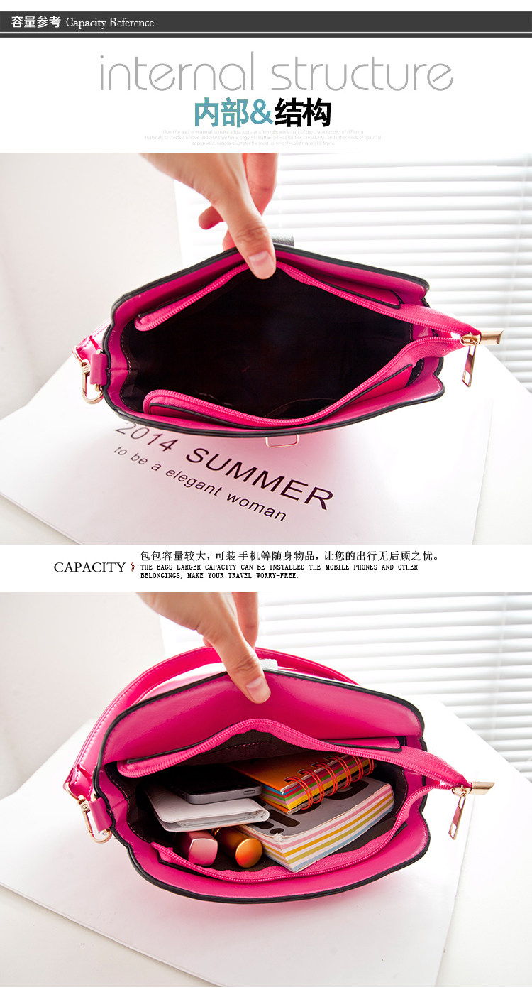 Material: High quality PU Size: Width 23cm, thickness 12cm, 21cm high Lining: high quality cloth Adjustable long strap, removable bag