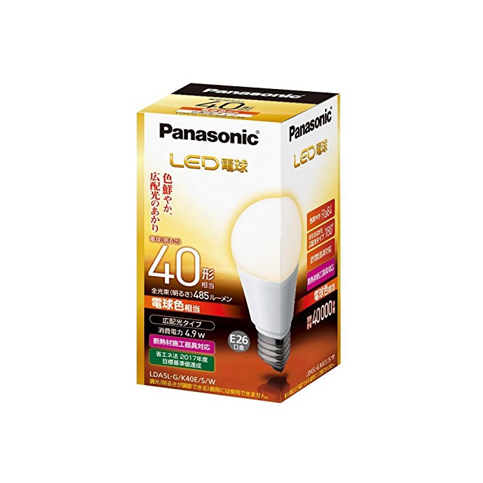 원본상품명: 【Amazon.co.jp限定】パナソニック LED電球 口金直26mm 電球40W形相 電球色相(4.9W) 一般電球配光タイプ 4個入 密閉形器具 LDA5LGK40ESW4TZ [