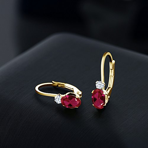 -. Title : 1.44 Ct Oval Red Created Ruby White Created Sapphire 14K Yellow Gold Earrings