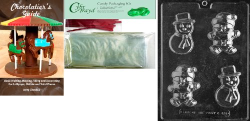 Cybrtrayd Snowman, Santa Chocolate Mold with Chocolatier's Bundle of 25 Cello Bags, 25 Red Twist Ties and Chocolatier's Guide