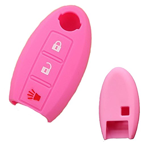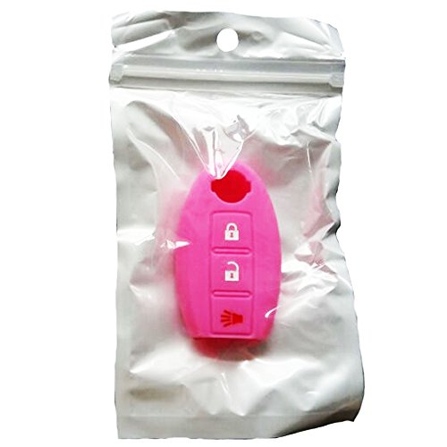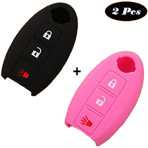 WELLSKEY Black + Pink Silicone Car Key Cases Cover Holder Replacement 3 Buttons For Nissan Almera / Altima / GT-R / Maxima / Murano / Sentra / Teana / Tiida / Juke / Qashqai / X-trail - Pack of 2 pcs
