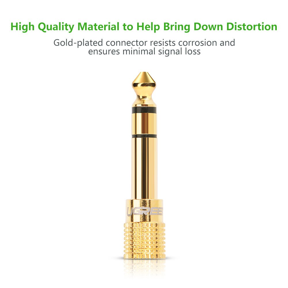 UGREEN stereo mini jack to stereo standard plug replacement adapter is an audio device equipped with a 6.35 mm (1/4 inch) stereo jack for smartphones, tablets, iPods, headphones etc. with 3.5 mm (1/8 inch)