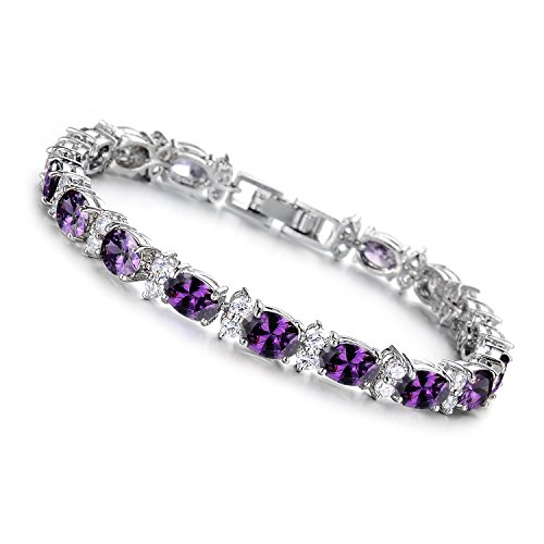 -. Title : Girl Era Elegant Oval-Cut Amethyst with Genuine Tennis Bracelet Charm Bracelets