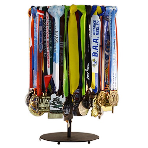 THE ORIGINAL PREMIER TABLETOP RUNNING RACE MEDAL DISPLAY! Beautifully display your collection of medals from marathons, half-marathons, 5Ks, triathlons, road races, and other athletic events. Perfect for use in the home, office or as a gift to the runner or athlete in your life!