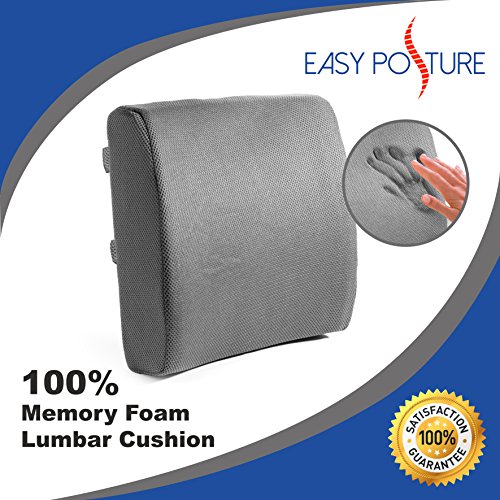 PROVIDES GREAT BACK SUPPORT FOR CHAIRS - and PAIN RELIEF from sitting in a desk chair or driving for long periods in an uncomfortable car seat; helps to relieve lower back strain. No need to replace your office chair! Our Easy Posture Memory Foam lumbar cushion is designed to help you reduce back pressure by evenly redistributing your body weight, soothe pressure points, and provide maximum spinal support and comfort.