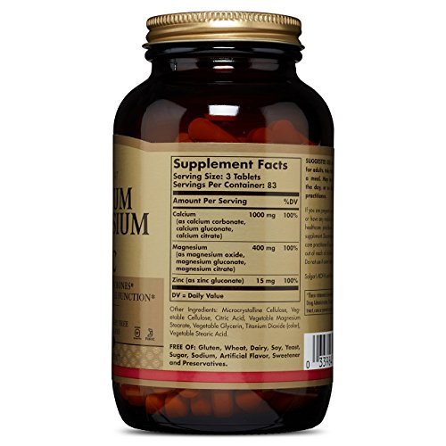 ADDED ZINC BENEFITS: The combining of calcium and magnesium these in Solgar tablets is that in addition to the ways the body benefits from each of these ingredients, magnesium helps to regulate calcium transport and aids in the influx of calcium into bone. This formulation contains the trace mineral, Zinc, which plays a role in the synthesis of collagen in bone tissue