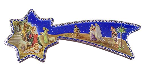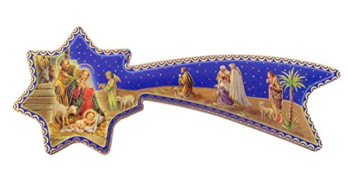 Wooden Shooting Star Plaque with Gold Embossed Nativity Scene, 6 Inch