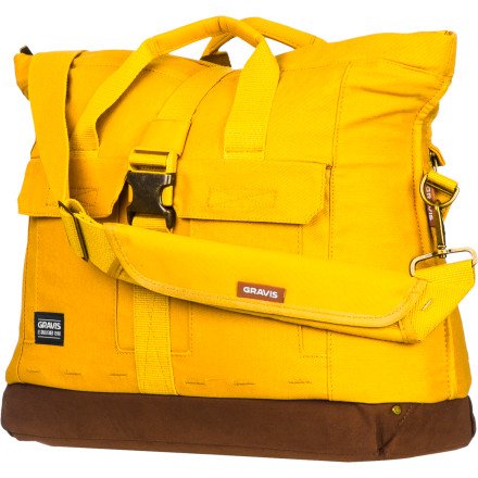Studio : Gravis Publisher : Gravis Binding : Apparel Product Description Gravis Men's The Commuter Bag. The Commuter Bag in Honey Mustard Check out this perfect on the go bag to provide a compact easy commute whether it is work, school, or a side bag for travel. This bag has the great classic design with a new stylish design with convenient compartments including the large one with the buckle clip flap, a back zippered utility pocket for a laptop, and front pockets with Velcro closures. Other Colors available are Honey Mustard, and Rust Large Compartment with an Adjustable Plastic Buckle Strap Adjustable Shoulder Strap Front Pockets with Velcro Closure Small Back Utility Pocket for Laptop Carry Handle on the Top Fold down Top with Rain Flap for Protection By Gravis Size Fit: 15"H x 20"W x 6"D. 0