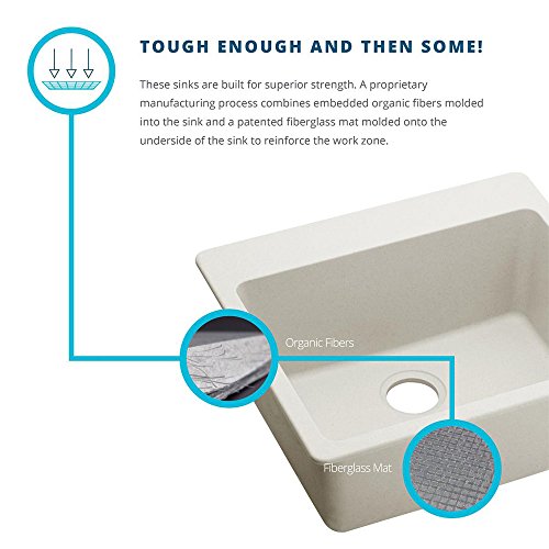 - SUPERIOR STRENGTH: Organic fibers offer extra impact resistance; fiberglass mat molded onto underside of the sink reinforces the most used work zone