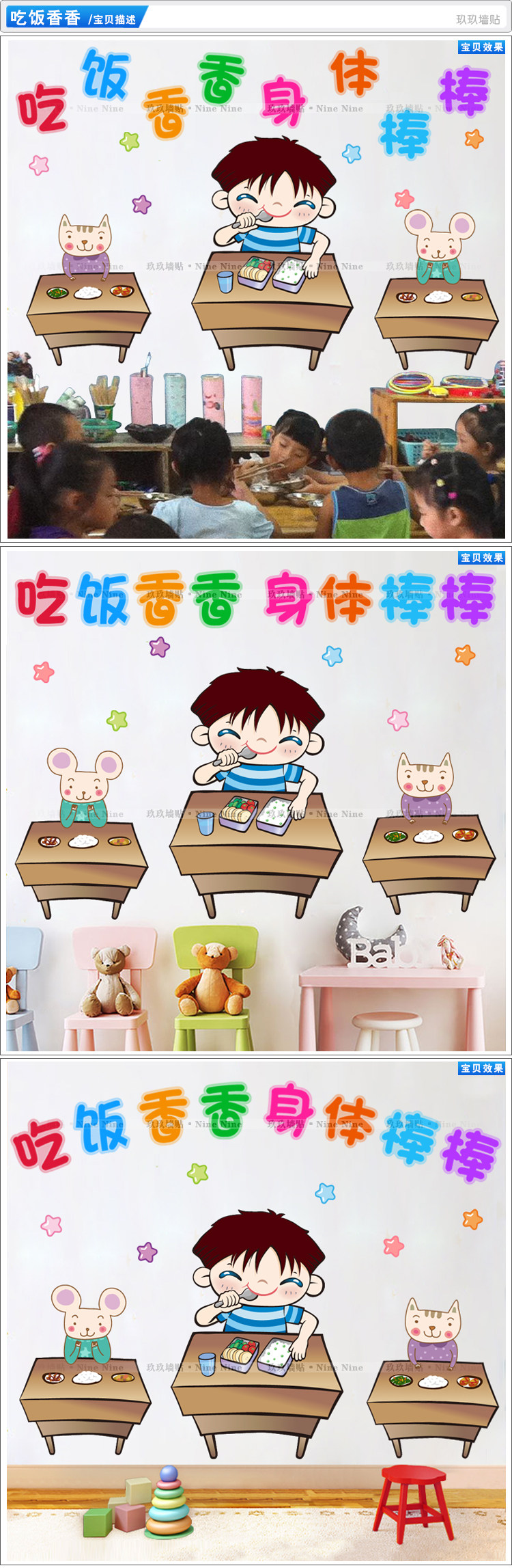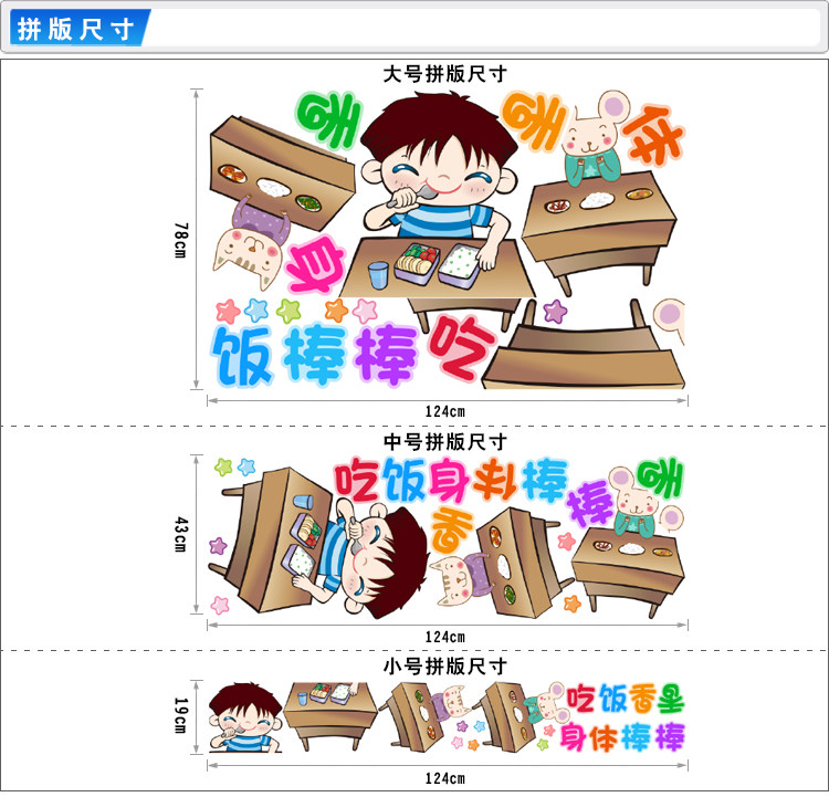 幼儿园小学校食堂餐厅小饭桌墙面装饰墙贴卡通小人吃饭贴纸贴画