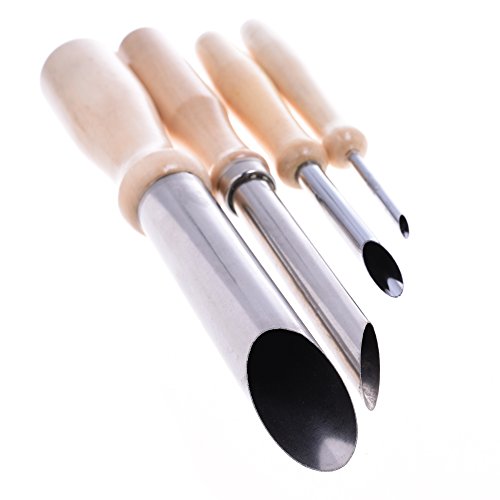 BCP Pack of 4 Stainless Steel and Wood Circular Clay Hole Cutters for Pottery and Sculpture