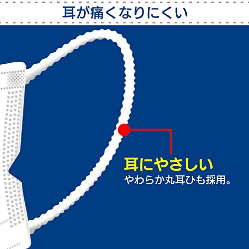 耳にやさしいやわらか平型ゴムで長時間使用しても痛くなりにくい。