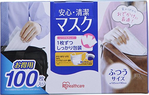個包装で持ち運びに便利。 清潔にお使い頂けるプリーツ型マスクです。