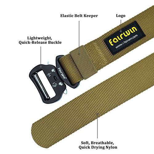 Product Description The belt is designed to be worn with most casual or tactical pants. Whether you carry everyday, or just want a solid belt that will withstand abuse without sacrificing comfort, the Fairwin tactical belt?is a perfect choice.