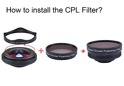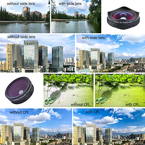 -. Feature : Made of professional 4 elements 4 groups HD coated optical glasses and aluminum alloy construction enhance the duration, minimizes lens glare, reflection, ghosting and other artifacts / With this 16mm wide angle lens, you can capable of capturing more landscape at the field of 112 degree. The magnification is 0.6x,offers you high definition and resolution image. No need Photoshop. / The polarizing filter lens screw on the wide angle lens, it saturates colors without changing overall color balance, cut down reflections from non-metallic surfaces such as water and glass. / Universal design: the phone camera lens contains universal removable clip, easy to carry and place, the soft rubber clip will not scratch or damage your mobile device, compatible for most smartphone. / The wide angle lens produces shots that are so wide, high performance image, no dark circle. It is extensive use for ultimate selfies and vacations, architectural, nature and landscape photography.