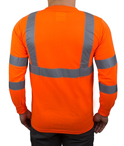 NY Hi-Viz Workwear L9091 Class 3 High Vis Reflective Long Sleeve ANSI Safety Shirt (Extra Large, Orange)