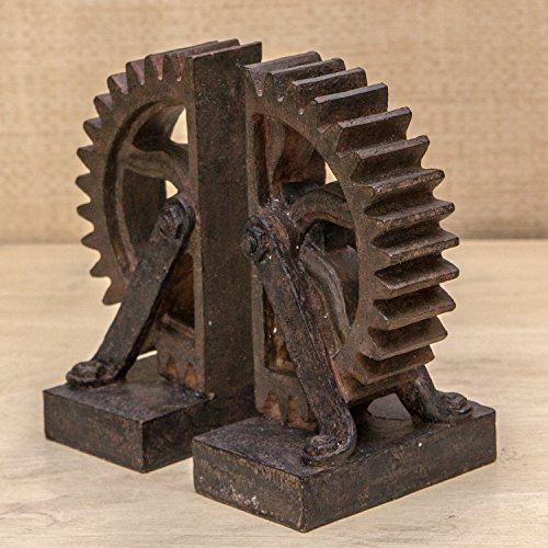 Sagebrook Home AR10433-03 S/2 Wheel Gear Bookends, 4.65" x 3.5" x 7", Rust