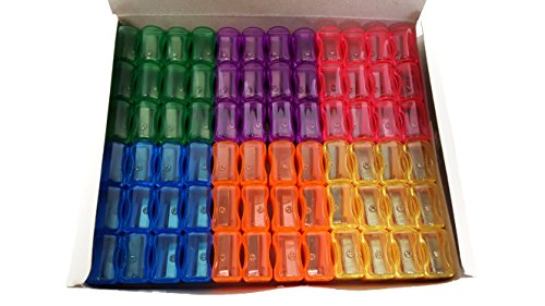 Pencil Sharpeners For Kids with Removable Neon Colored Lids (72 Pack)
