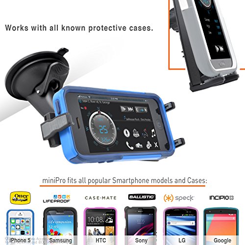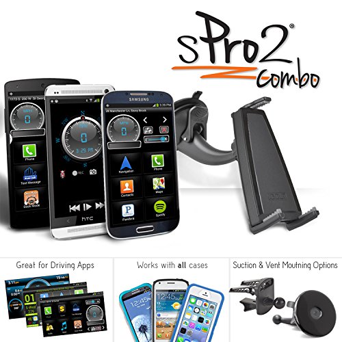 -. Feature : The sPro2 is compatible with all smartphones and can be mounted on the windshield or dashboard. A vent mount is also included in the combo kit for as an extra mounting option. The open design allows all ports and the camera lens to remain unobstructed and available for use. / Compatibility: Designed to fit most phones, from an iPhone 5 to Samsung Galaxy Note 4. / Case compatibility: Designed to fit most cases including Otterbox Defender and Lifeproof. / Vent Mount: Mount for placement on air conditioning vents included. / Watch Youtube Demo here: https://www.youtube.com/watch?v=X2wP-yDUOoI&list=PLqi7EQ2mLDYwAkYtq8hT0UH-WjQz3PkUx&index=3