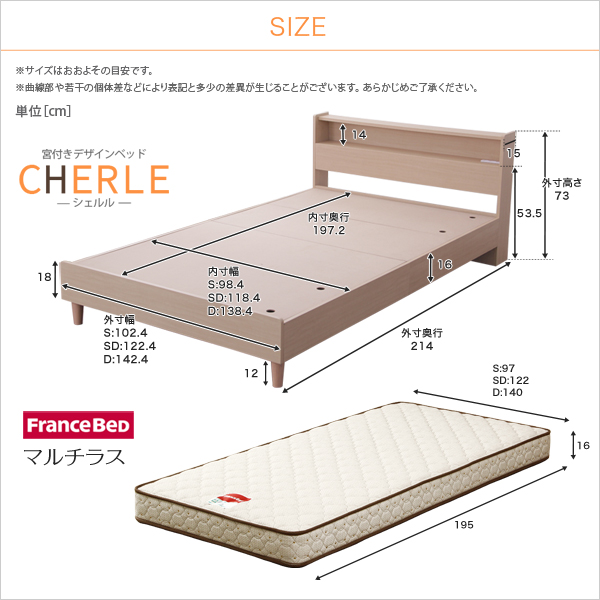 宮付きデザインベッド【シェルル-CHERLE-(ダブル)】(マルチラススーパースプリングマットレス付き)