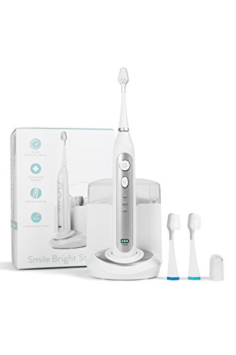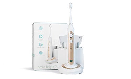 At 40,000 brush strokes per minute, the Platinum Sonic Toothbrush blasts away plaque while gently polishing your teeth for a whiter, brighter smile. The lab tested UV Sanitizing Charging Base kills germs and bacteria while keeping your brush charged for the next use. The 30 Second Area Change Alert and Two Minute Smart Auto Timer make it easy to meet the dentist recommended brushing time. Made of the highest quality DuPont bristles, the Platinum Sonic brush head is uniquely designed to get your teeth sparkling clean. Your Bright Smile Starts Here.Feature