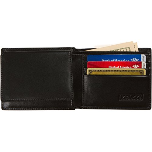 -. Binding : Apparel -. Brand : Normson -. Color : Black -. Department : mens -. Feature : NO MORE WORRIES: Blocks RFID Signals Ranging From 10MHz to 3000MHz, Including 13.56 MHz Which Provides Protection For Credit Cards, Debit Cards, and Drivers Licenses. / EVERY SINGLE POCKET IS SHIELDED INDIVIDUALLY: Locking Your Personal Information Safely Inside. Thanks To This Smart Design, When You Open Your Wallet Each Credit Card Is Protected. / 100% MONEY BACK GUARANTEE: If For Whatever Reason You Don't Absolutely Love The Normson Passport Wallet, Just Return It. And We'll Refund Every Penny (Or Replace It If There's A Problem). -. ProductGroup : Apparel -. ProductTypeName : ACCESSORY -. Title : Normson Genuine Leather Wallet -RFID Blocking Stops Credit Card and Identity Theft