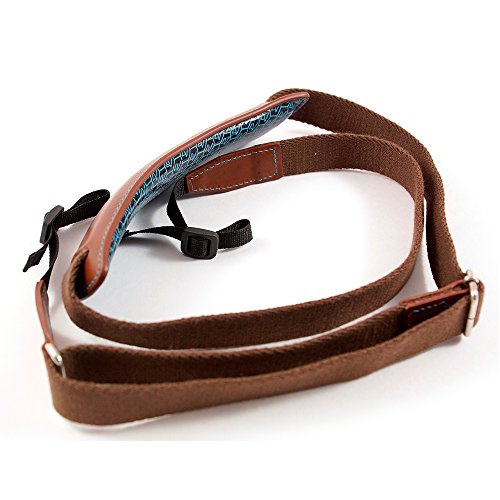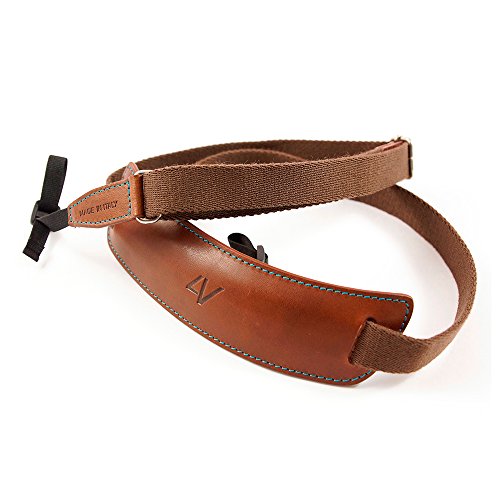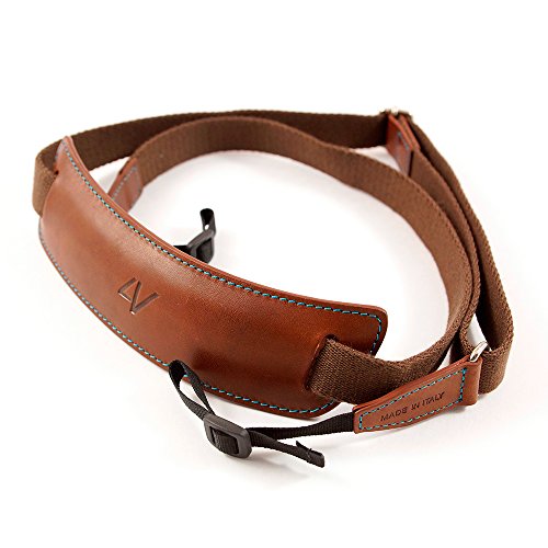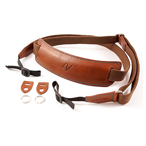 4V Design Lusso Tuscany Leather Large Handmade Leather Camera Strap w/ Universal Fit Kit, Brown/Cyan (2LP01BVV2330)