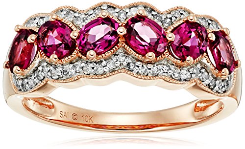 10k Pink Gold Rhodolite and Diamond Band Ring (1/5cttw, I-J Color, I3 Clarity), Size 7