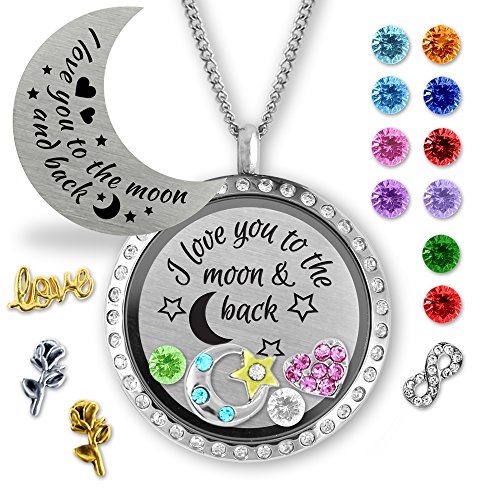 -. Title : Mothers Day Gifts Jewelry Locket Necklace with Birthstones for Mom & Grandma- I Love You To The Moon And Back