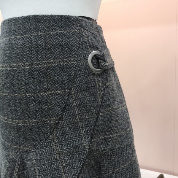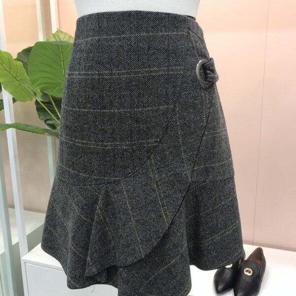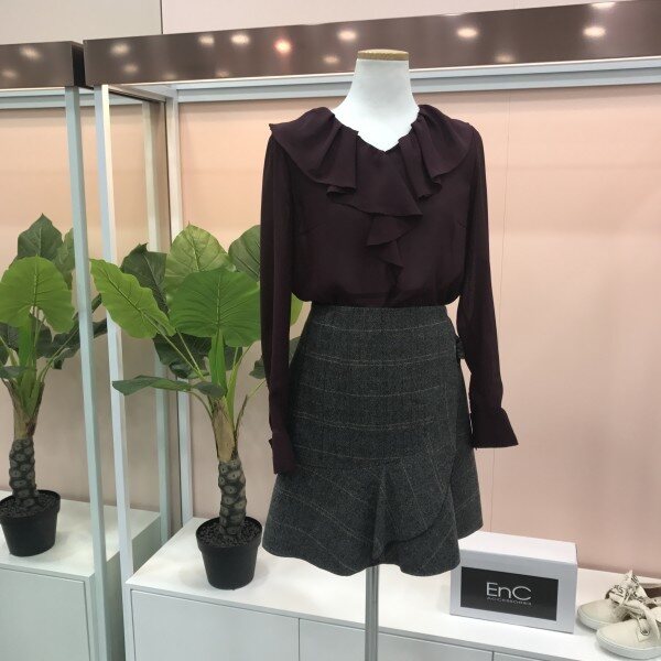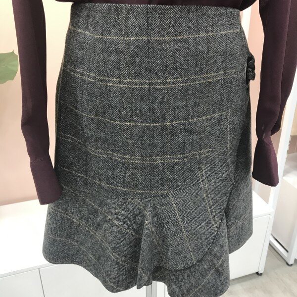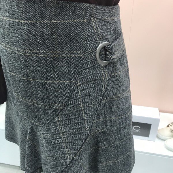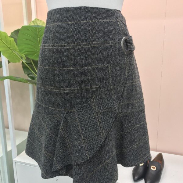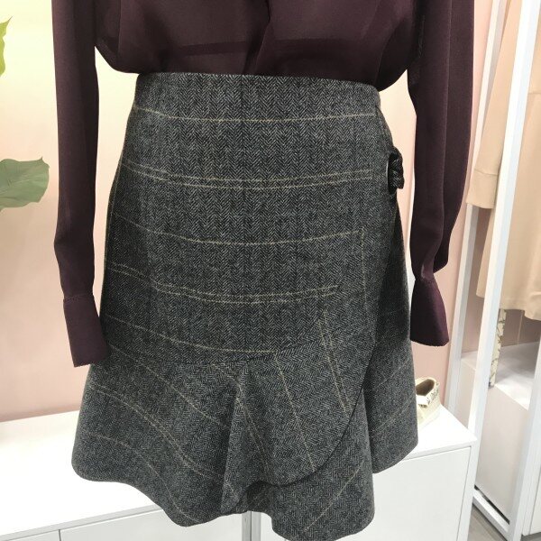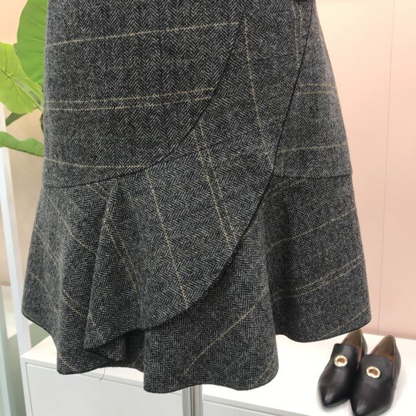 여성스럽고 예쁜 사랑스러운 헤링본 체크 울스커트예요.::러플이 한단 대어져있어 입체감있고 예쁘고 모직원단이라 따뜻하고 헤링본 체크 프린트가 고급스럽고 세련됨을 더해주어요.::^^ 자켓과 같이 매치해도 굿굿!!러플디테일이 너무 예쁜 이엔씨 스커트입니다.::^^