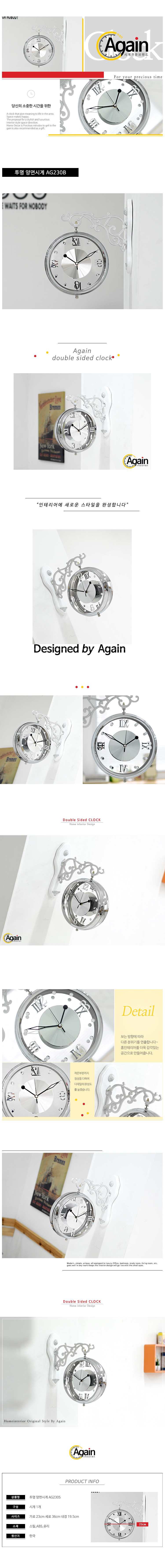 - 품명 및 모델명투명 양면시계 AG230S