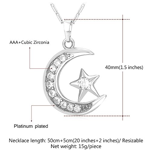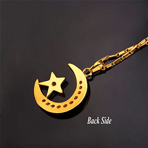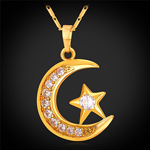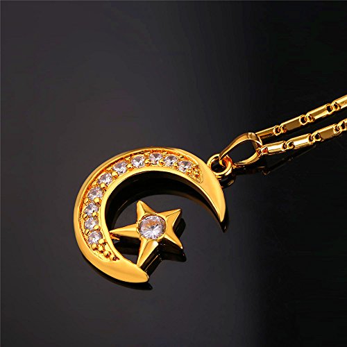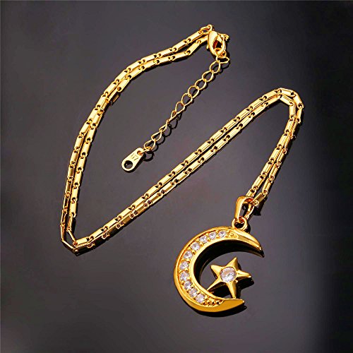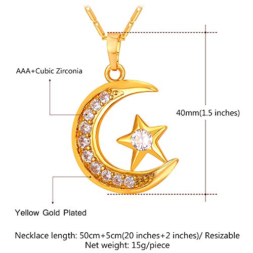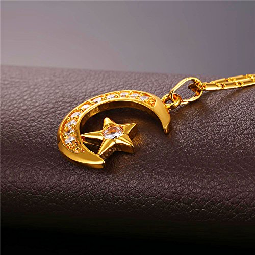 -. Binding : Jewelry -. Brand : U7 -. Department : womens -. Feature : "I Love you to the moon" moon and star design. / Clear white cubic zircon stone shiny. / Metal type: 18K Gold Plated, 18k gold plated is a method of depositing a thin layer of 18k gold onto surface of item. / Pendant:1.5 inches, chain:20 inches long,plus 2 inches chain extender. Max length:22 inches / Nickel Free. Package include a necklace and a U7 design gift box. -. Label : U7 Jewelry -. Manufacturer : U7 Jewelry -. Model : U7 P2341 -. MPN : U7 P2341 -. PartNumber : U7 P2341 -. ProductGroup : Jewelry -. ProductTypeName : FASHIONNECKLACEBRACELETANKLET -. Publisher : U7 Jewelry -. Studio : U7 Jewelry -. Title : Statement Islamic Jewelry "I Love You To The Moon and Back" Cresent Moon Star Pendant Necklace