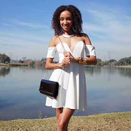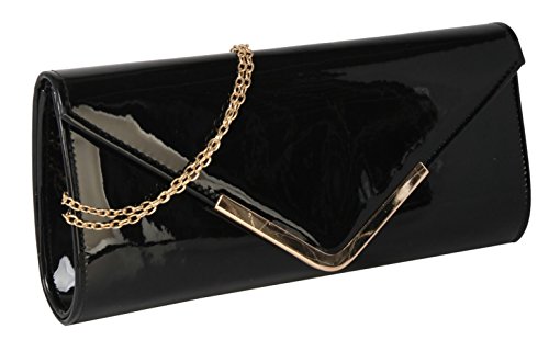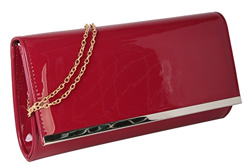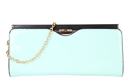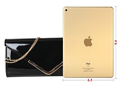 -. Feature : This handbag comes in 8 different colors: Blue, Brown, Nude, Red, Coffee, Turquoise, Beige, and Black. / Shiny Patent PU Leather Accented with Crystal Décor and Gold Metal Chain Strap Evening Clutch. / High Quality Fabric Lined Interior with Multiple Interior Pockets. 2 Compartments separated by 1 Center Divider Zipper Pocket. 1 Large Pocket Inside with Zipper and Pockets on Both Side. / Approximate Size info: Length 11" x Width 1" x Height 6" Material: PU Faux Leather. Top Snap Closure. / Color showing in other color is to show the different variation angles of the handbag. The actual bag ship, will be the one your purchesed.