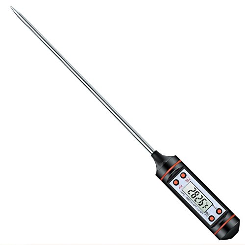[Updated Version] Color: Black Red This is a nice, accurate and easy-to-use digital thermometer with a thin probe. The digital thermometer is handy to carry anywhere. Perfect for indoor kitchen and outdoor back yard barbecue activities Features: - Instant Reaction: Digital Thermometer 's LCD display shows accurate temperature results in about 1 second - Auto Shutdown: the thermometer automatically shuts down after 10 minutes after you are not using it. - Wide Temperature Range: The measuring range of our thermometer is -50ºC (-58°F) to 300°C (572º F) - Excellent design: use anti-corrosive materials and 5.9-inch-long probe - Product durable: Made of 304 stainless steel and it have a long life for Battery life Specifications: Temperature Range: -58 °f to 662 °f (-50 °c to 350 °c) Two Buttons: ON/OFF And °c / °f 10-Minute Auto-Off Feature Resolution: 0.1 °c / °f Temperature Accuracy: ±2°f(±1°c) In Range Between 32 to 212°f (0 to 100°c) Button Battery (included): 1 X AG13 (Also Named LR44), 1.5 V Note: 1. Avoid scratching by the cusp of the long probe when using the item. 2. Never use the digital thermometer in a closed oven. 3. Clean the cooking thermometer and probe with a damp cloth before and after use. Package Included: 1 x Digital Thermometer 1 x Manual Seller Warranty Policy: - 45-Day Money Back Guarantee - 12-Month Replacement Warranty - 7/24 Online Customer Service - Lifetime Support Guarantee 0 |