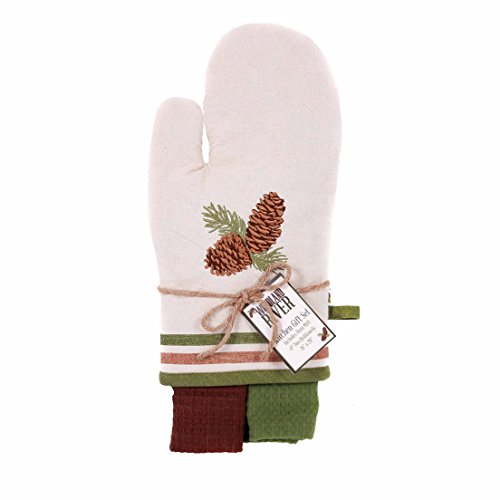 Woodland River Pinecone Oven Mitt and 2 Dishtowel Kitchen Gift Set