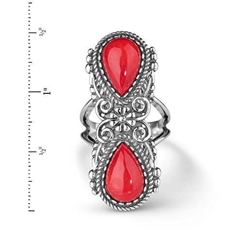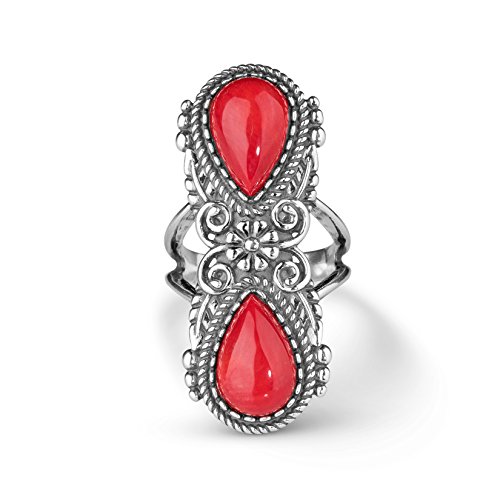 -. Binding : Jewelry -. Brand : American West -. Department : Womens -. Feature : Sterling silver elongated ring / Red coral gemstones / Measures approximately 1-1/2" tall x 1/2" wide / Designed and crafted in America with gemstones from around the world / Elongated ring with large, pear-shaped red coral cabochons in bezel settings with flower and rope details on a split tapered shank. -. Label : Relios -. Manufacturer : Relios -. Model : cp7-4100-194-xx -. MPN : cp7-4100-194-xx -. PartNumber : cp7-4100-194-xx -. ProductGroup : Jewelry -. ProductTypeName : FASHIONRING -. Publisher : Relios -. Studio : Relios -. Title : American West Sterling Silver Red Coral Elongated Ring