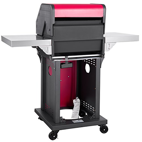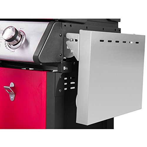 - Red powder coated front board with bottle opener and seasoning basket, 4 casters, easy to move
