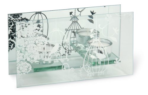 [Product Information]- Decorative tea light candle holder has etched birdcage design on the front glass