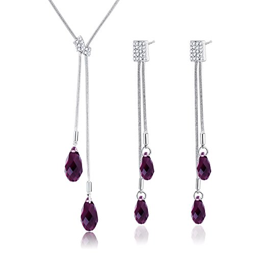 -. Title : Mondaynoon Valentine's Day Gift “Tender Girl” Austrian Crystal Teardrop Jewelry Women’s Necklace and Earring Sets