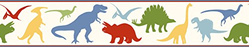 -. Title : Chesapeake BYR94301B Dino Mighties Dinosaur Toss Wallpaper Border, Red