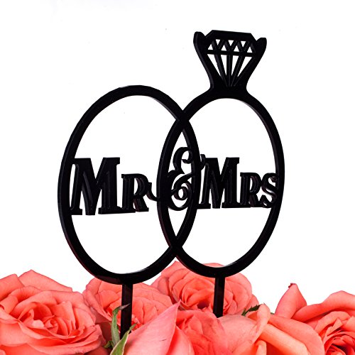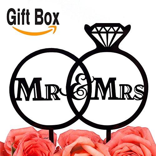 LOVENJOY with Gift Box Diamond Ring Mr and Mrs Wedding Engagement Cake Topper (5.5-inch, Black)