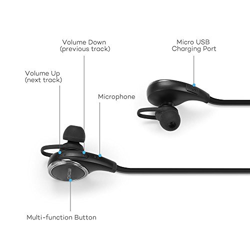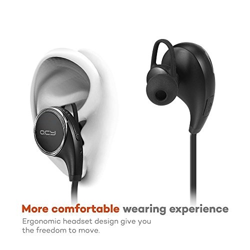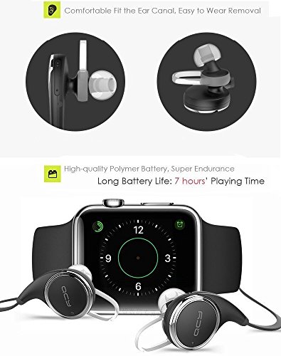 -. Feature : Upgrade version Qy7: QY8 is equipped with Bluetooth 4.1 + EDR APT-X audio decode technology, offering you perfect stereo sound. And it can connect with 2 cell phones or tablets at the same time. / Sweat-proof, lightweight wireless stereo headphone with comfortable and secure ear-fitting design.Interchangeable ear-buds and ear-hooks, good sound isolation, CVC Noise Cancellation 6.0 technology, two powerful drivers delivering rich and vivid music. / Clear bass resonance, and superior sound isolation. Not only music, bluetooth phone still HD. / Simple-to-use: control all functions of your music (volume, sound, song selection) and calls from your phone via our simple-to-use user interface on the headphones themselves. / Long battery life: 7 hours talking/playing time, and about 175 hours standby time,2 hours charging time.