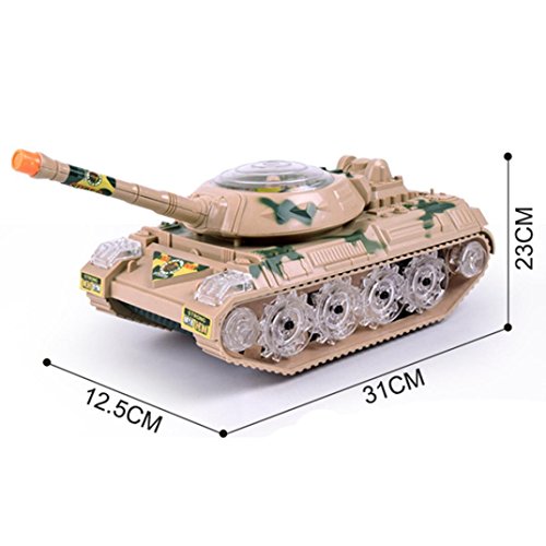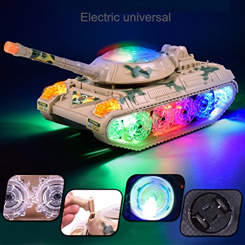 -. Binding : Toy -. Brand : Celendi -. EAN : 0664294304727 -. Feature : Intelligent movement sensor system . / Lots of 3D LED lights that are very bright and engaging ; Flashing lights and engine sounds with music . / Spinning wheels with flashing lights; Sound effects include realistic engine start up & music . / When it bumps into something on the ground , it acutally turns round and heads off in the opposite direction. / This toy is a remarkable gift for girls or boys. When playing, they can have lots of fun which is ideal as a gift for daily, birthdays, holidays. -. Label : Celendi -. Manufacturer : Celendi -. MPN : ag-15 -. PartNumber : ag-15 -. ProductGroup : Toy -. ProductTypeName : TOYS_AND_GAMES -. Publisher : Celendi -. Studio : Celendi -. Title : Celendi Super Tank with Music Automatic Steering Flashing Wheel Racing Toy Kids Gifts -. UPC : 664294304727