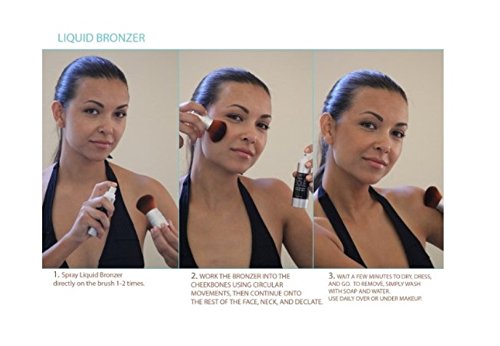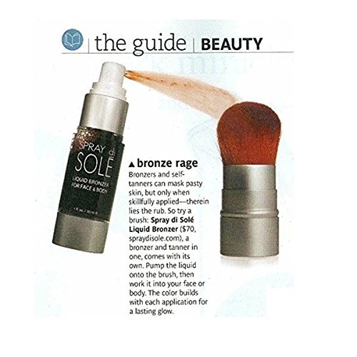 Spray Di Solé Liquid Bronzer is used daily (free from DHA) to create an overall warm and sun-kissed glow. It provides you with a "Red Carpet ready" look in an instant. The liquid bronzer blends nicely with all skin tones; helps nourish the skin, and will create a natural looking tan. It can be used with makeup, in place of makeup, or instead of blush and blends easily. It's also delicate enough to be used on the face and body. All of our solutions are made with natural and organic ingredients and unlike other sunless tanning solutions, they are actually good for your skin.Feature