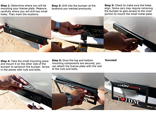 iJDMTOY® JDM Black Universal Fit Front Bumper License Plate Relocator Bracket Holder Bar