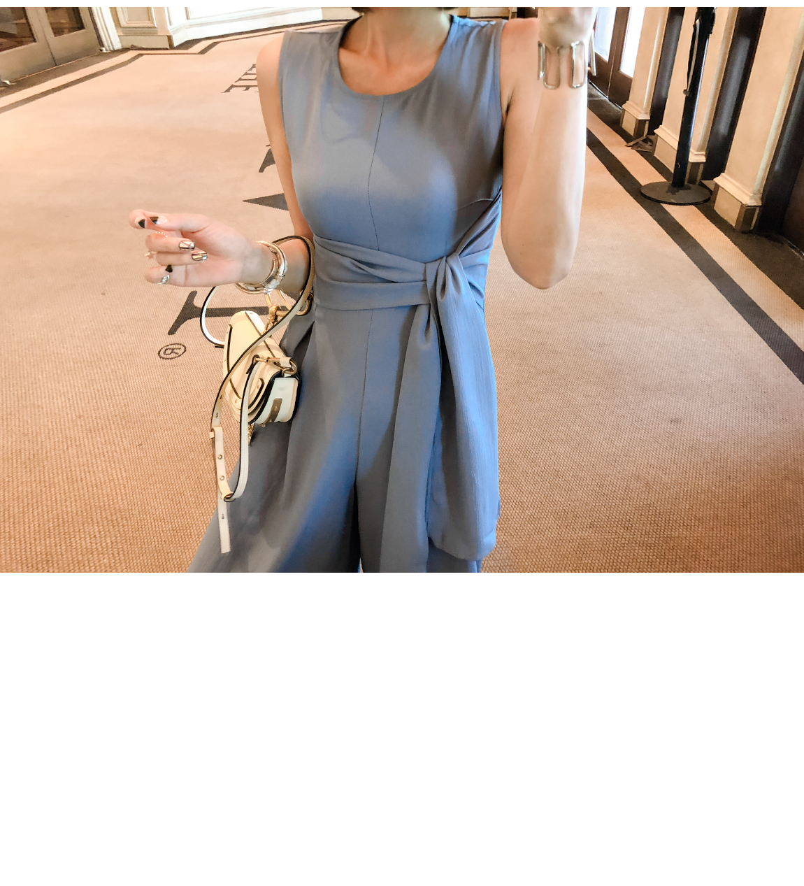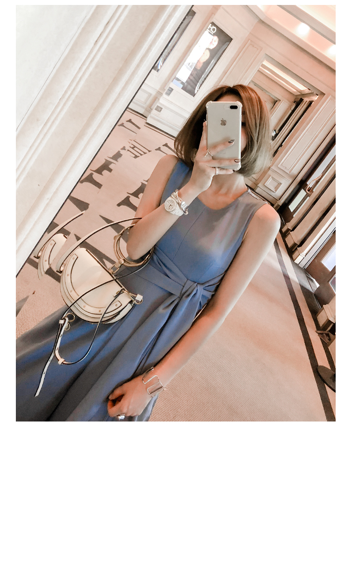 허리끈으로 안정감 있는 착용이 가능하며 라인감을 살려줍니다